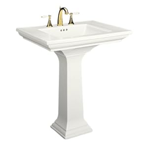 The Kohler K-2268-1-0 Memoirs Pedestal Lavatory with Single-Hole Faucet Drilling and Stately Design, White Description